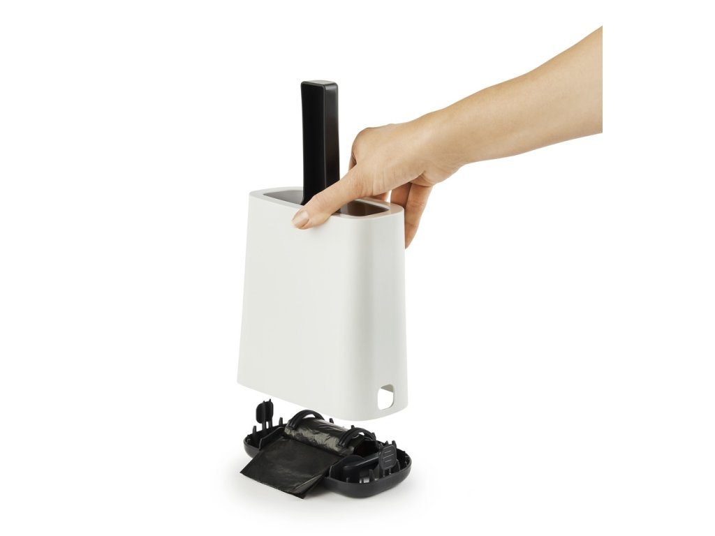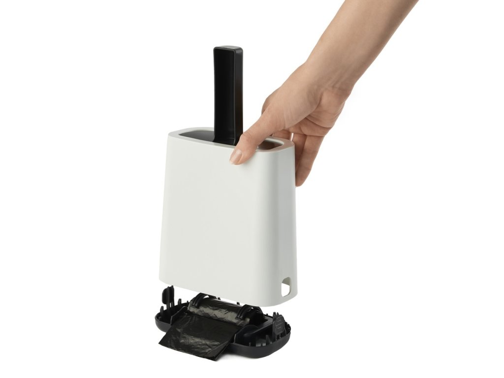 Set obsahuje roli sáčků, kterou lze umístit do spodní části držáku (spodek lze vycvaknout) a jednoduše vytahovat.