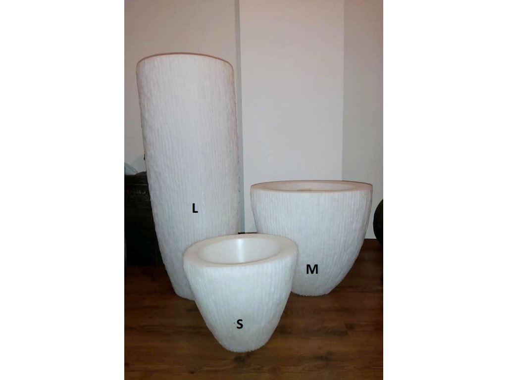 Při bílém a béžovém provedení lze do spodní části vložit světýlka o rozzářit tak květináč. (platí pro všechny velikosti).
